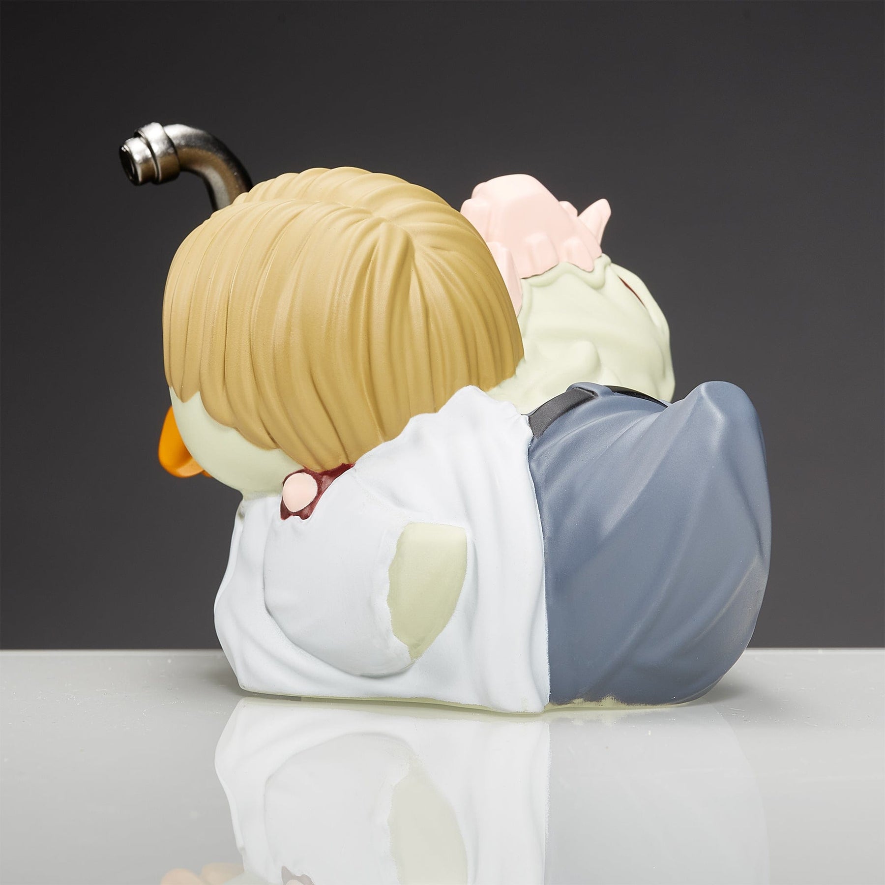The terrifying mutations of William Birkin, post-infection with his own creation—the G-Virus—are disturbingly delightful in duck form. His menacing third-stage transformation, complete with the bulging eye, mutated arm, and twisted features, is captured with impeccable detail. This TUBBZ figure turns the horror of Birkin into a fun yet unnerving collectable toy. Even as a duck, Birkin’s mutated presence is impossible to ignore.